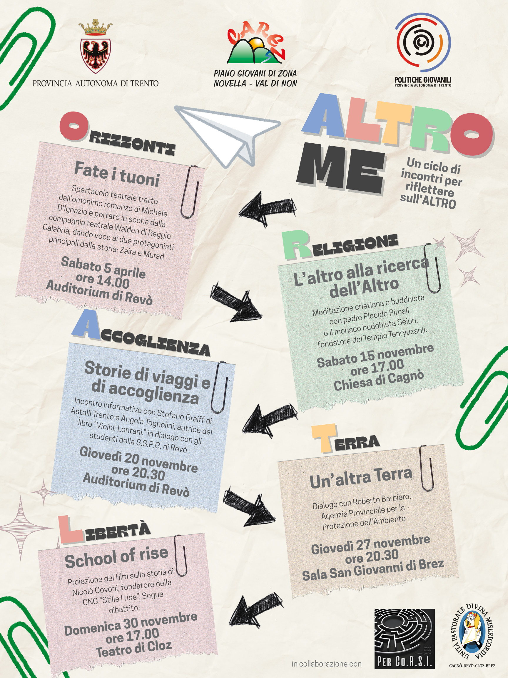 Descrizione "L'altro me". Un ciclo di incontri per riflettere sull'altro..Piano Giovani Novella 15/20/27/30 novembre 25 e 5 aprile 26
