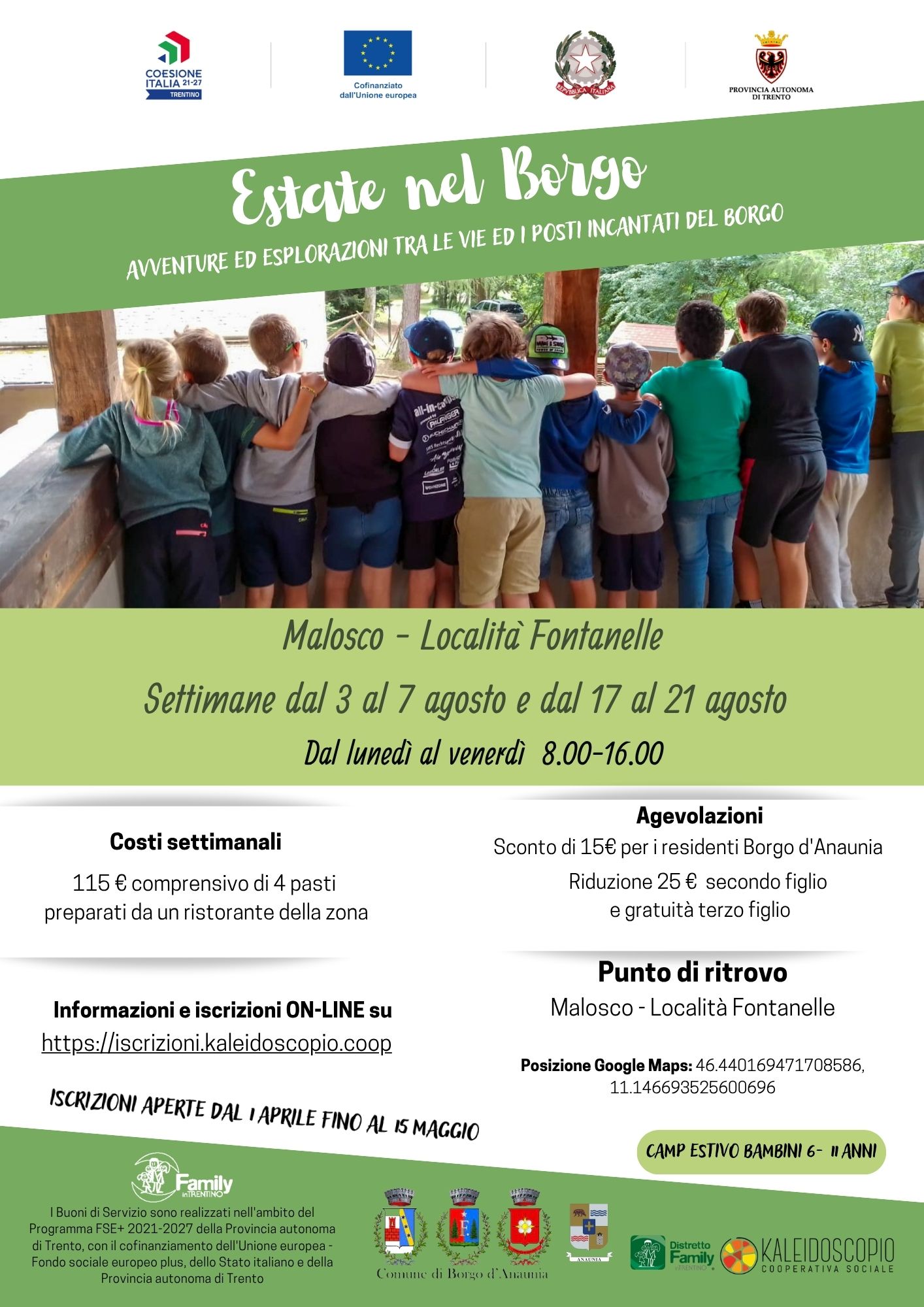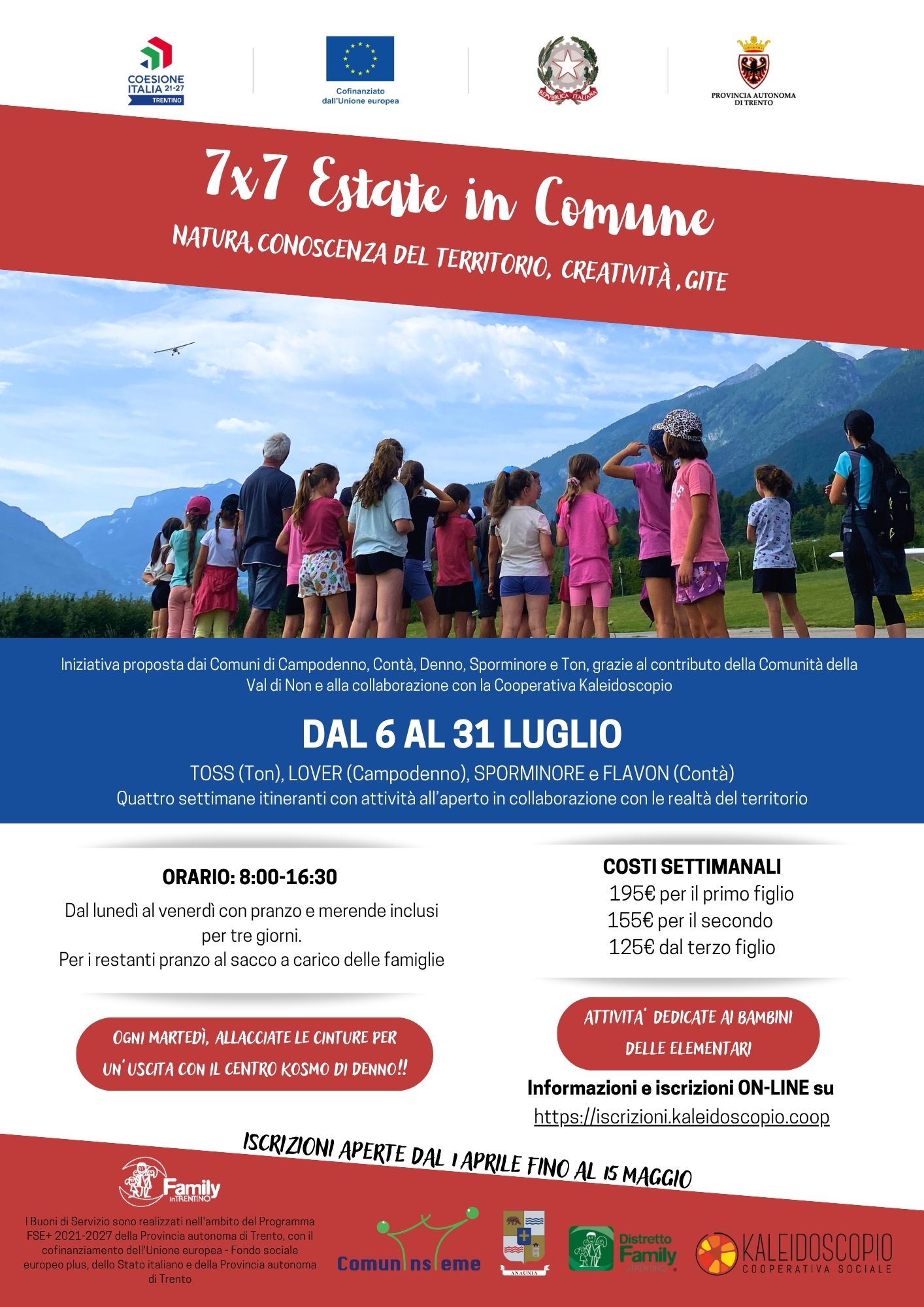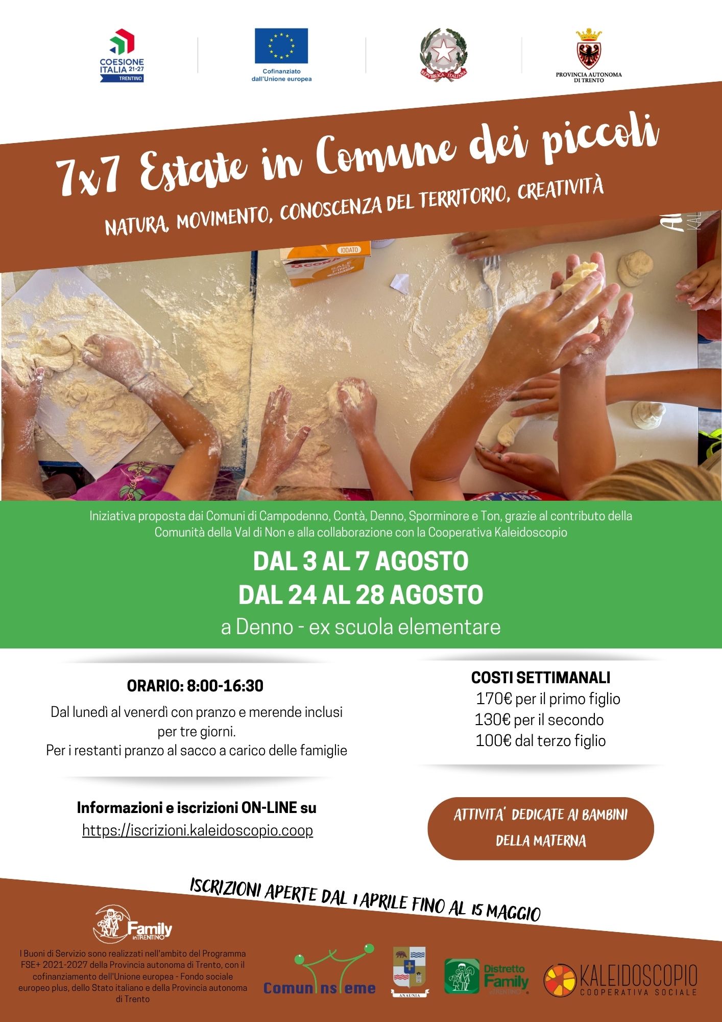 Attività estive per bambini organizzate da coop. Kaleidoscopio e Comunità di valle
